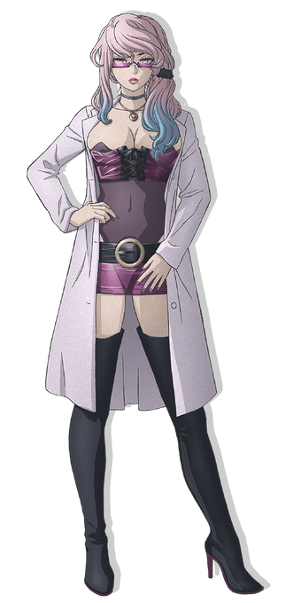The doctor 医者 isha is a main character of akudama drive. She was leading a simple life until a series of misfortunes got her involved with the akudama. She also wears glasses that have pink glass and black frames.